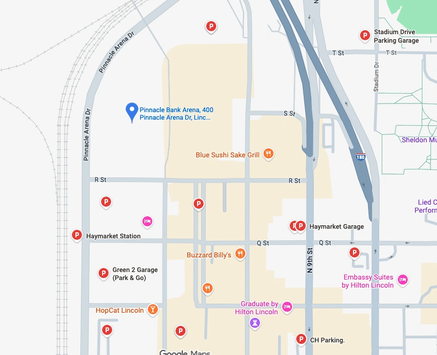 Please allow enough time before the event for travel and parking, as traffic is often busier than normal around times of Pinnacle Bank Arena events in Lincoln.